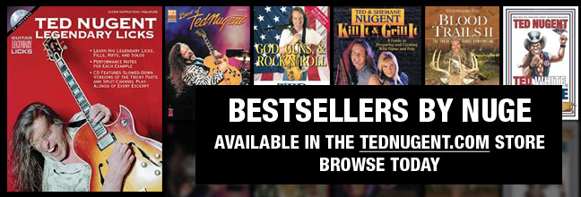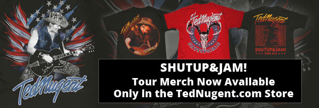 Available exclusively on TedNugent.com, the brand new all-over printed t-shirts are larger than life and packing serious heat!